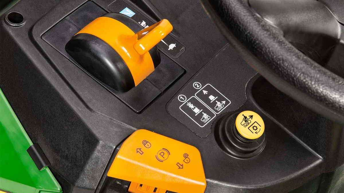 Ein ergonomisch geformter Sitz, ein übersichtliches Armaturenbrett und leicht zugängliche Bedienelemente sorgen für maximalen Komfort. Auch bei längeren Einsätzen bleibt der Mäher angenehm zu bedienen.